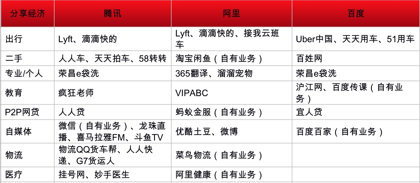 BAT在分享經(jīng)濟領(lǐng)域搶先布局